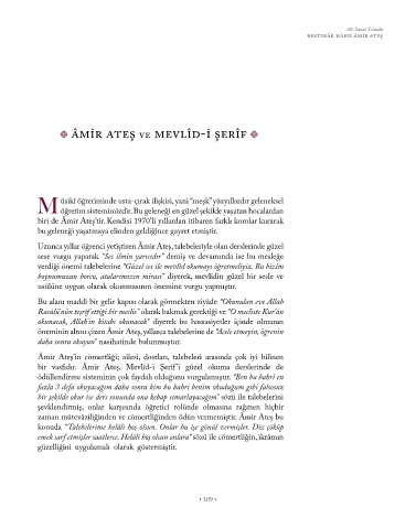 bir vasfıdır. Âmir Ateş, Mevlîd-i Şerîf’i güzel okuma derslerinde de