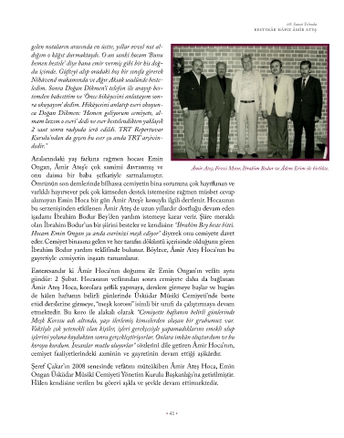 Hocam Emin Ongan şu anda eserinizi meşk ediyor” diyerek onu cemiyete davet
