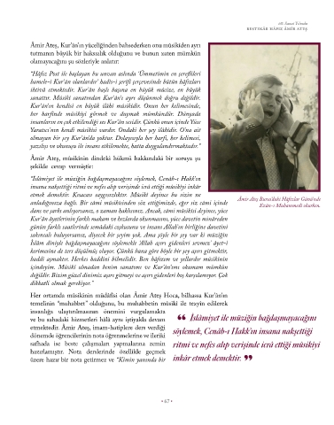 Her ortamda mûsikînin müdâfîsi olan Âmir Ateş Hoca, bilhassa Kur’ân’ın