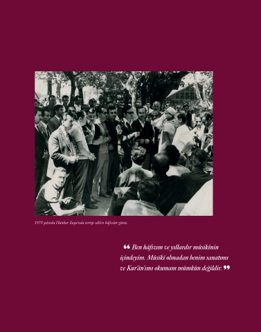 60. Sanat Yılında Bestekâr HÂFIZ ÂMİR ATEŞ 1975 yılında Hünkar Suyu’nda tertip edilen hâfızlar günü. Ben hâfızım ve yıllardır mûsikînin içindeyim. Mûsikî olmadan benim sanatımı ve Kur’ân’ımı okumam mümkün değildir. • 69 •