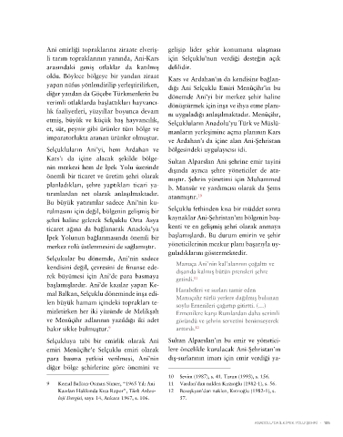 li tarım topraklarının yanında, Ani-Kars için Selçuklu’nun verdiği desteğin açık