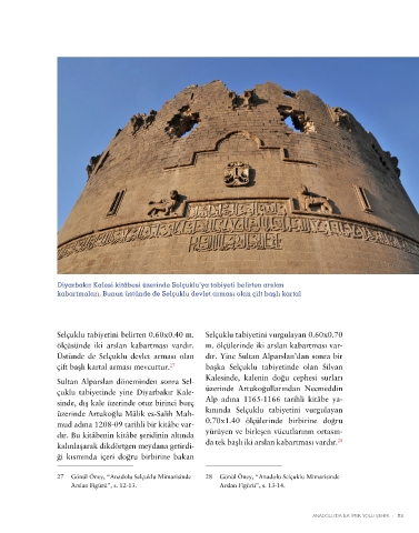 Diyarbakır Kalesi kitâbesi üzerinde Selçuklu’ya tabiyeti belirten arslan