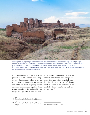 geçip Divin kapısından Ani’ye giriş ya- nu ve bazı kısımlarının kaya parçalarıyla