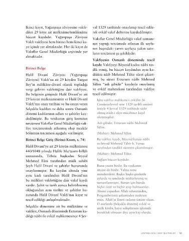 hüccet kaydıdır. Yağanpaşa Zâviyesi Vakıflar Genel Müdürlüğü vakıf uzmanı-