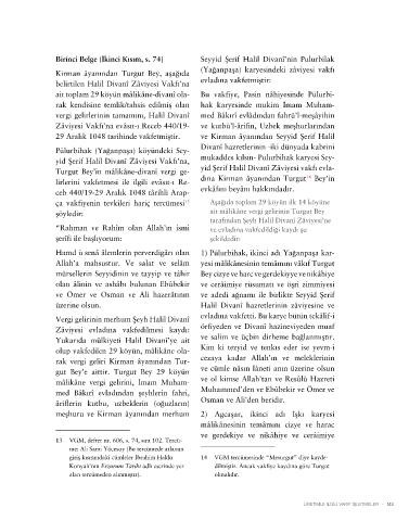 Birinci Belge (İkinci Kısım, s. 74) Seyyid Şerif Halil Divanî’nin Pulurbilak