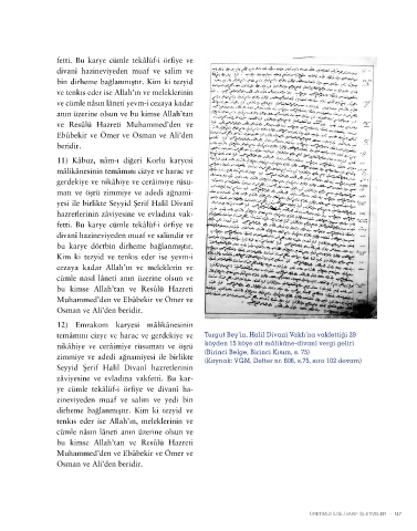 temâmını cizye ve harac ve gerdekiye ve Turgut Bey’in, Halil Divanî Vakfı’na vakfettiği 29