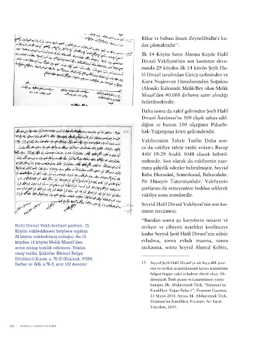 29 köyün vakfedilmiş olduğu). Bu 15 kadar Seyyid Şerif Halil Divanî’nin zükûr