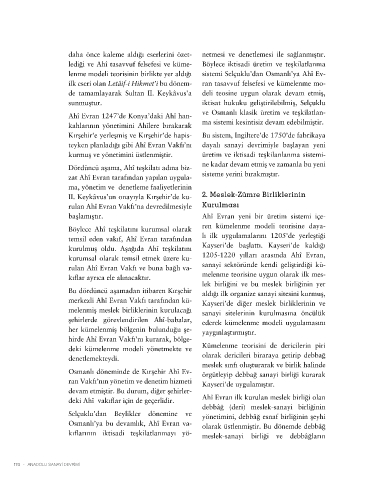 II. Keykâvus’un onayıyla Kırşehir’de ku- 2. Meslek-Zümre Birliklerinin