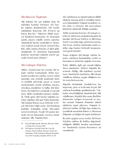 üzere Ahîler tarafından kurulan vakıflar- lodan izleyebildiğimiz Anadolu’daki Ahî