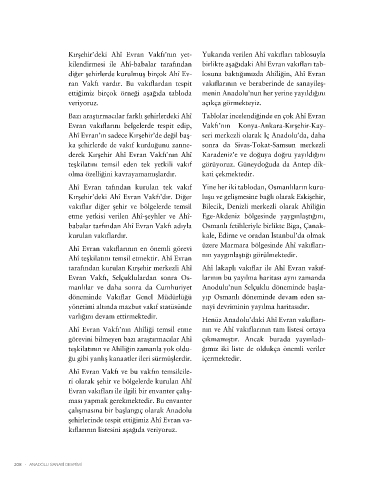Kırşehir’deki Ahî Evran Vakfı’nın yet- Yukarıda verilen Ahî vakıfları tablosuyla
