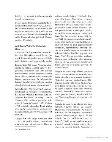 Kırşehir’deki Ahî Evran Vakfı’na, dola- Evran Zâviyesi şeyhlerinin görevleri de