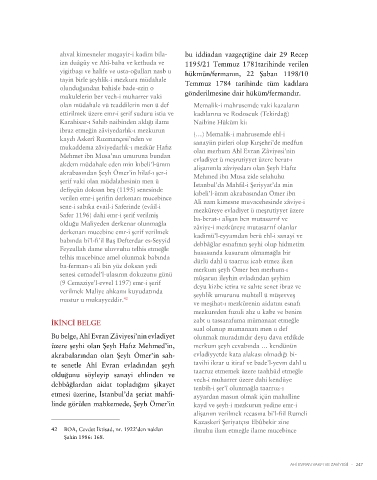 akrabasından Şeyh Ömer’in hilaf-ı şer-i Mehmed ibn Musa zide selahuhu