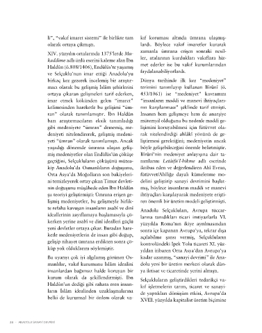 yaşadığı dönemde ümrana ulaşan geliş- böyle gelişebileceğini önemle belirtmiştir.