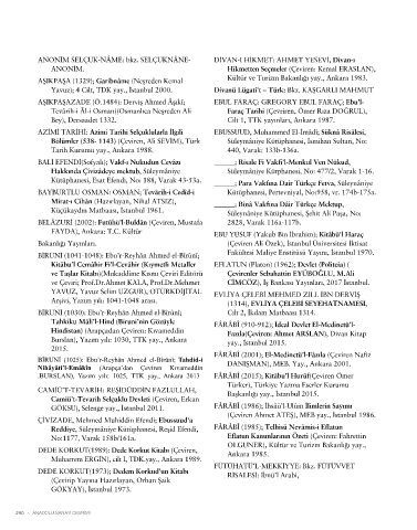 ANONİM SELÇUK-NÂME: bkz. SELÇUKNÂNE- DİVAN-I HİKMET: AHMET YESEVİ, Divan-ı