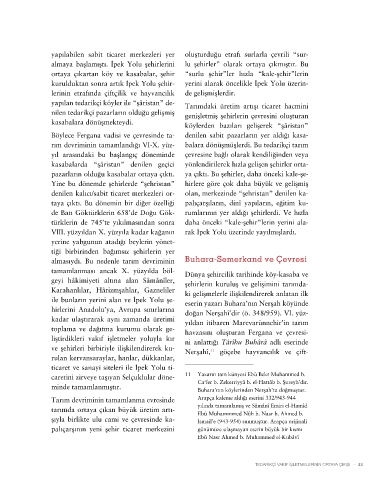 ile bunların yerini alan ve İpek Yolu şe- eserin yazarı Buhara’nın Nerşah köyünde