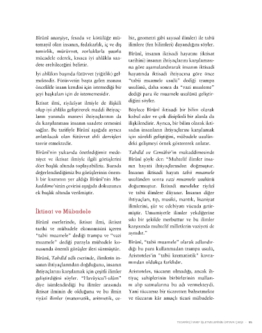 olup iyi ahlâkı geliştirerek maddi ihtiyaç- Böylece Bîrûnî iktisadi bir bilim olarak