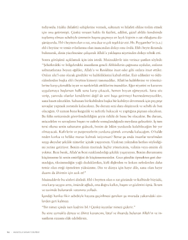 tediyordu. Hakkı (hilafeti) sahiplerine vermek, saltanatı ve hilafeti ehline teslim etmek