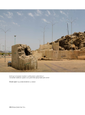 Arafat günü toplanan insanların su ihtiyaçlarını gidermek için Osmanlılar tarafından yapılan su kuyularından geriye kalan yıkık kemer Önceki sayfa: Kuyulardan beslenen su olukları 206 | Evliya Çelebi Hac Yolu