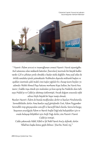 “ Hazret-i Âdem zevcesi ve insanoğlunun annesi Hazret-i Havvâ ziyaretgâhı: