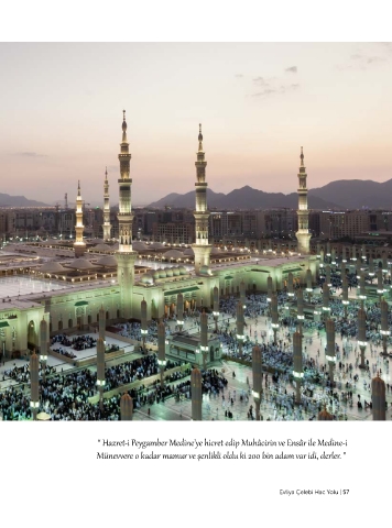 “ Hazret-i Peygamber Medine’ye hicret edip Muhâcirin ve Ensâr ile Medine-i Münevvere o kadar mamur ve şenlikli oldu ki 200 bin adam var idi, derler. ” Evliya Çelebi Hac Yolu | 57