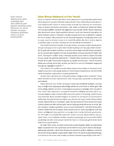 çekleşeceği kabulüdür. Fakat İslam iktisadı yine ekonomik şartların değişken ve dinamik hizmetin alışverişinden yani ticaretten kaynaklanan bir kârdır. Dolayısıyla konunun faizle