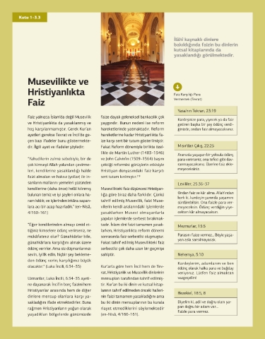 kendilerine (daha önce) helâl kılınmış Musevilikteki faiz düşüncesi Hristiyan- lar. Katılım bankaları “faizsiz”, “risk güdülemez.