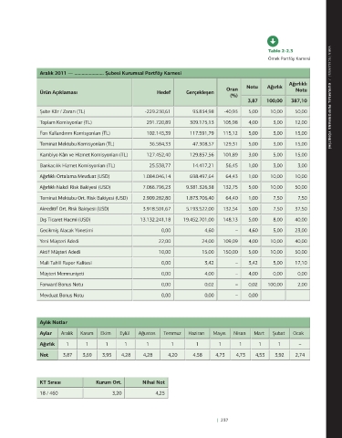 Tablo 2-2.2 Tablo 2-2.3 Örnek Şube Müdürü Karnesi Örnek Portföy Karnesi VAKA INCELEMESI / KURUMSAL PERFORMANS YÖNETIMI 236 | SAĞLAM BANKACILIK MODELİ • KURUMSAL VE TİCARİ BANKACILIK | 237
