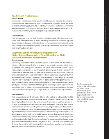 olduğu kadar kredi sürecinin de sorumluluğunu taşınması gerektiği vurgulanmıştır. Şube Müşterilerin kredi talebi şubeler tarafından veri olarak alınıp kapsamlı bir analiz yapıl-