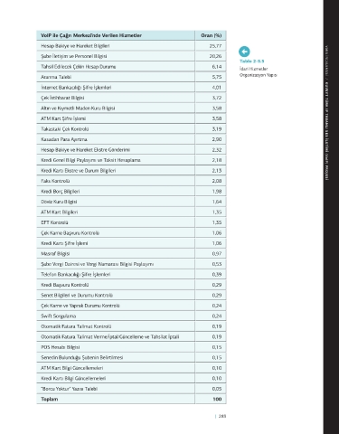 VoIP ile çağrı merkezlerinden en fazla alınan hizmetler gösterilmiştir. Bu tabloya göre