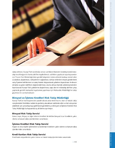Bunlara ilave olarak, Kurumsal ve Ticari Krediler Risk Takip Müdürlüğü’ne bağlı çalışan Bireysel Risk Takip Servisi
