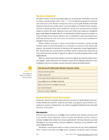 de oldukça önemli işlevleri vardır. Tablo 1-1.3’ten de görülebileceği gibi bir bankanın