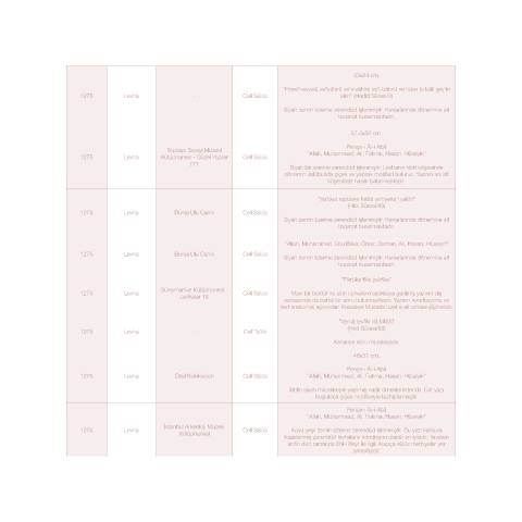 1275 Levha Kütüphanesi - Güzel Yazılar Celî Sülüs "Allah, Muhammed, Ali, Fatıma, Hasan, Hüseyin"