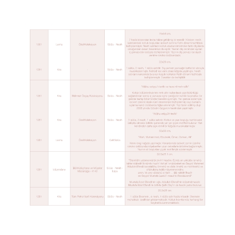 1281 Levha Özel Koleksiyon Sülüs - Nesih tezhiplenmiştir. Nesih satırların koltuk ebatları birbirinden farklı ölçülerde