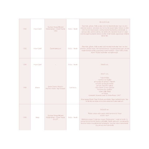 1282 Hilye-i Şerîf Özel Koleksiyon Sülüs - Nesih zeminler üzerine klasik formda bezenmiştir. Dış pervazında açık zemine