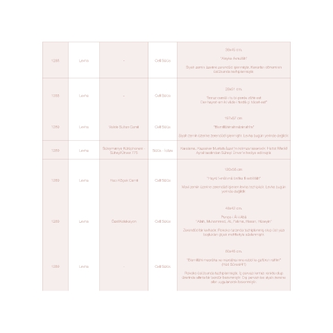 1289 Levha Özel Koleksiyon Celî Sülüs "Allah, Muhammed, Ali, Fatıma, Hasan, Hüseyin"