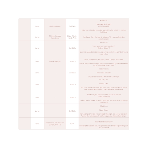 Kahverengi zemin üzerine zerendûd işlenmiştir. Dış pervaz tezhiplidir.