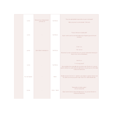 Yazı boşlukları ince sazyolları ile tamamlanmıştır. Bordo bir iç pervaz