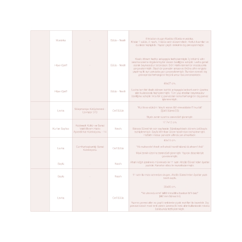 Murakka - Sülüs - Nesih Kıtalar 1 sülüs, 2 nesih, 1 sülüs satır düzenindedir. Koltuk kısımları ve