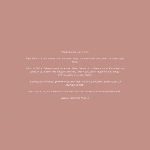 Papa Franciscus, ana mekanı örten kubbedeki yazıyı uzun süre inceleyerek, yazının ne ifade ettiğini