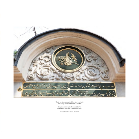 "Sâhib-zamân-ı saltanat hâkân-ı ahd-i ma’delet Yaptı sarây-ı nezdine bir câmi-i vâlâ zehî Bünyânını tahsîn idüp Zîver dedi târihini Abdülmecîd Han câmi-i âlî binâ kıldı behî" Küçük Mecidiye Camii, İstanbul.