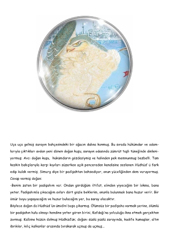 yormuş. Avcı doğan kuşu, hükümdarın gözdesiymiş ve halinden pek memnunmuş besbelli. Tam