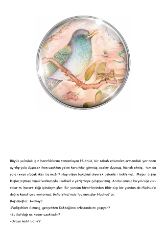 kuşlar pişman olmak korkusuyla Hüdhüd’ e yetişmeye çalışıyormuş. Acaba onunla bu yolcuğa çık-
