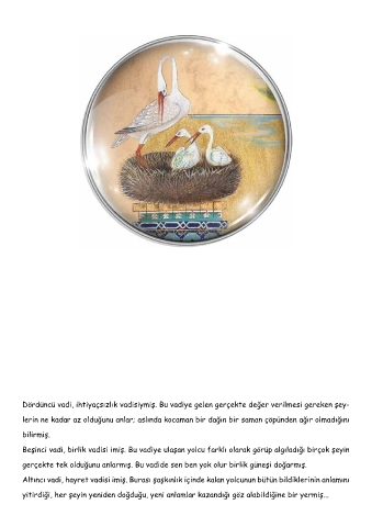 Dördüncü vadi, ihtiyaçsızlık vadisiymiş. Bu vadiye gelen gerçekte değer verilmesi gereken şey-