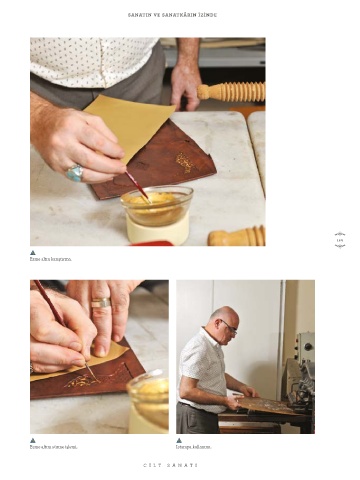 SANATIN VE SANATKÂRIN İZİNDE 129 Ezme altın karıştırma. Ezme altını sürme işlemi. Istampa kullanımı. CİL T S ANA TI