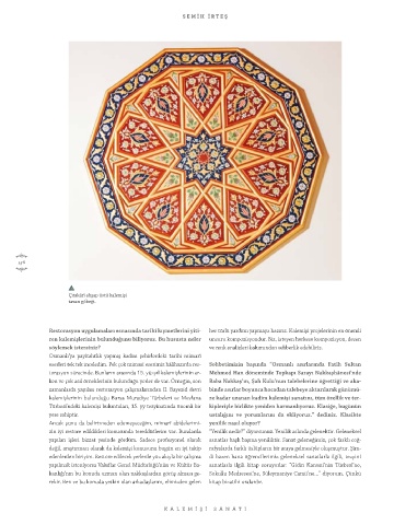 kanlığı’nın bu konuda uzman olan nakkaşlardan görüş alması ge- Sokullu Medresesi’ne, Süleymaniye Camii’ne…” diyorum. Çünkü