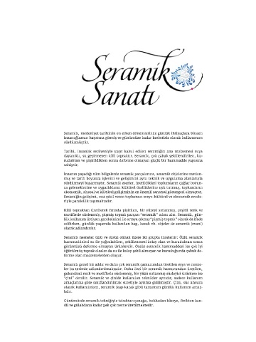 motiflerle süslenmiş, pişmiş toprak parçası “seramik” adını alır. Seramik, gün-