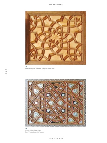 ŞEHM U S OKUR Münhanî (eğrisel) kündekârî. Şimşir ile cevizin raksı. 236 Ankara Melike Hatun Camii. Bağa, 24 ayar altın-sedef kakma. KÜNDEK ÂRÎ