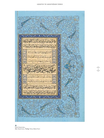 SANATIN VE SANATKÂRIN İZİNDE 23 Fatih Dîvânı’ndan... Hat: Hamit Aytaç. Tezhip: Fatma Rikkat Kunt