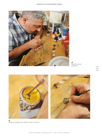 SANATIN VE SANATKÂRIN İZİNDE Mücevher tezyînat uygulaması. 265 Tasarlanan yüzüğün tezyîn edilerek son hâlinin verilmesi. M ÜCE VHER T A S ARIMI VE TE Z YİNA TI