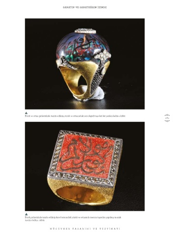 Etrafı ve ortası pırlantalarla tezyîn edilmiş yüzük ve ortasındaki yarı değerli taşa kat kat yazılan kelâm-ı kibâr.